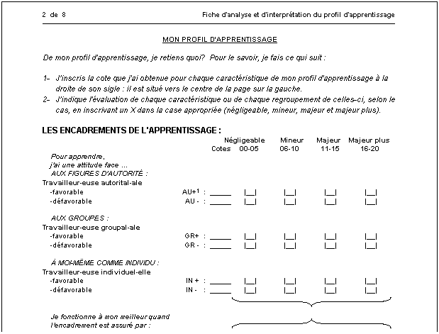 Pour me rejoindre...La fiche a été mise au point pour l'étudiant ou pour l'étudiante qui veut réfléchir individuellement ou en groupe sur son profil d'apprentissage afin d'en dégager les implications au niveau de ses activités d'apprentissage, de communication et de création.