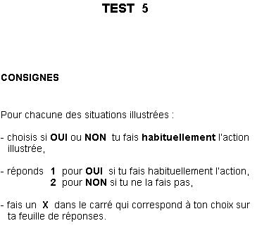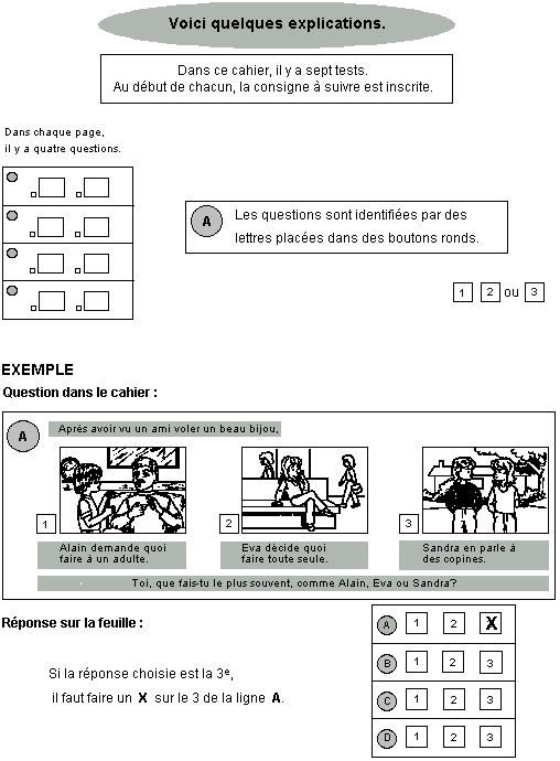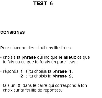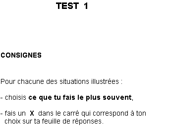 Voici un aperçu des types de questions utilisées dans ce questionnaire :Consignes particulières pour le test 1